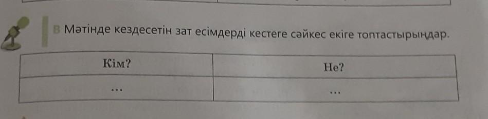 в Мәтінде кездесетін зат есімдерді кестеге сәйкес екіге топтастырыңдар.
