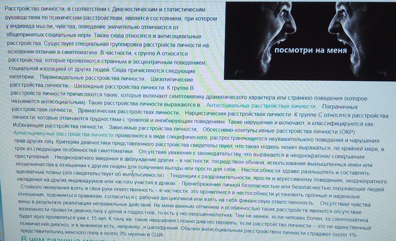 Антисоциальное расстройство личности характеризуется постоянной моделью пренебрежения последствиями и правами других.