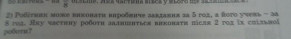 1) 1/5 + 1/8 = 13/40 - общая их производительность за час