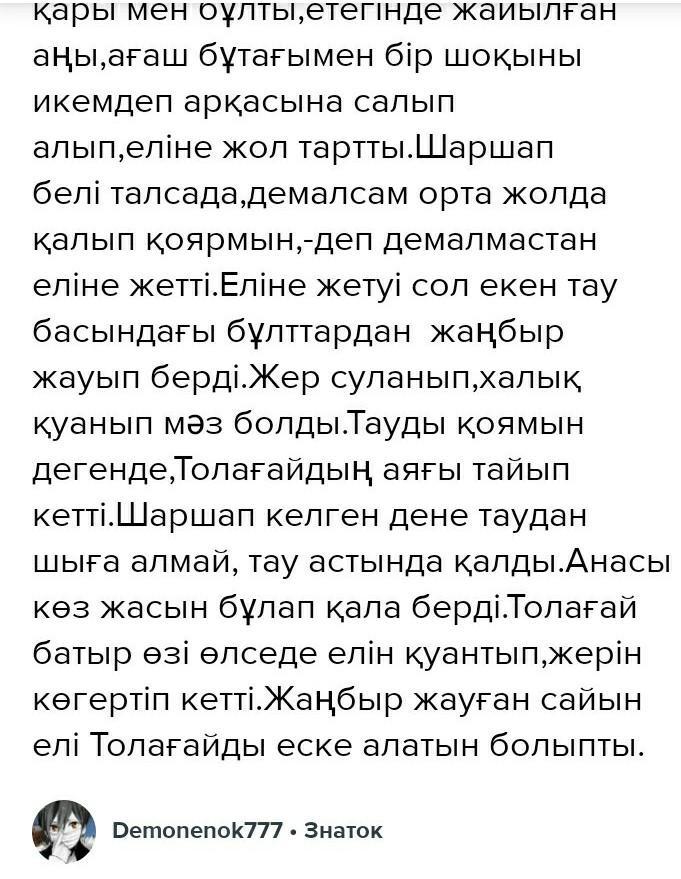 мын...» деген сөйлемдерден кейінгі оқиғаны әрі қарай әңгімеле,