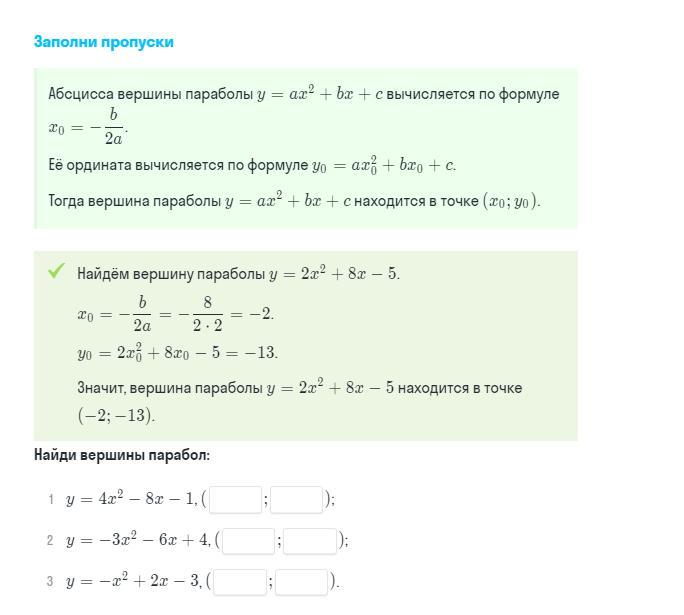 (х0;у0) - вершина параболы, х0=-b/2a, y0=y(x0)