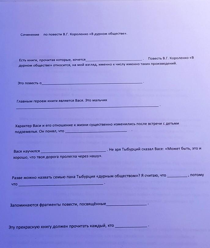 7 Лично мне произведение в дурном обществе запомнилось добротой Васи.Мне очень понравилась глава "кукла"так как в этой главе выражается самый добрый его поступок.