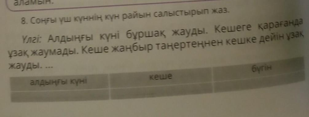 8. Соңғы үш күннің күн райын салыстырып жаз.