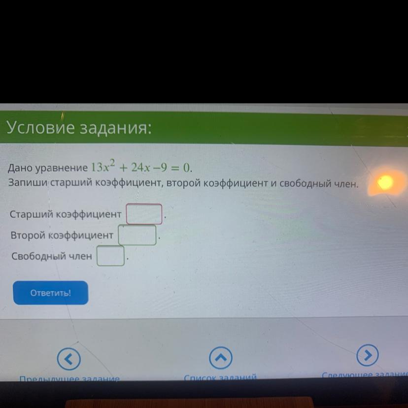 Старший коэффицент (число, что стоит при х²): 13.