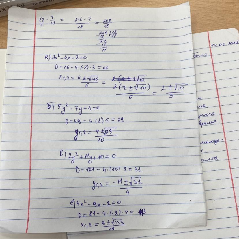 Все решение на листе.Странно,что ни один из дискриминантов не является квадратом какого либо числа.