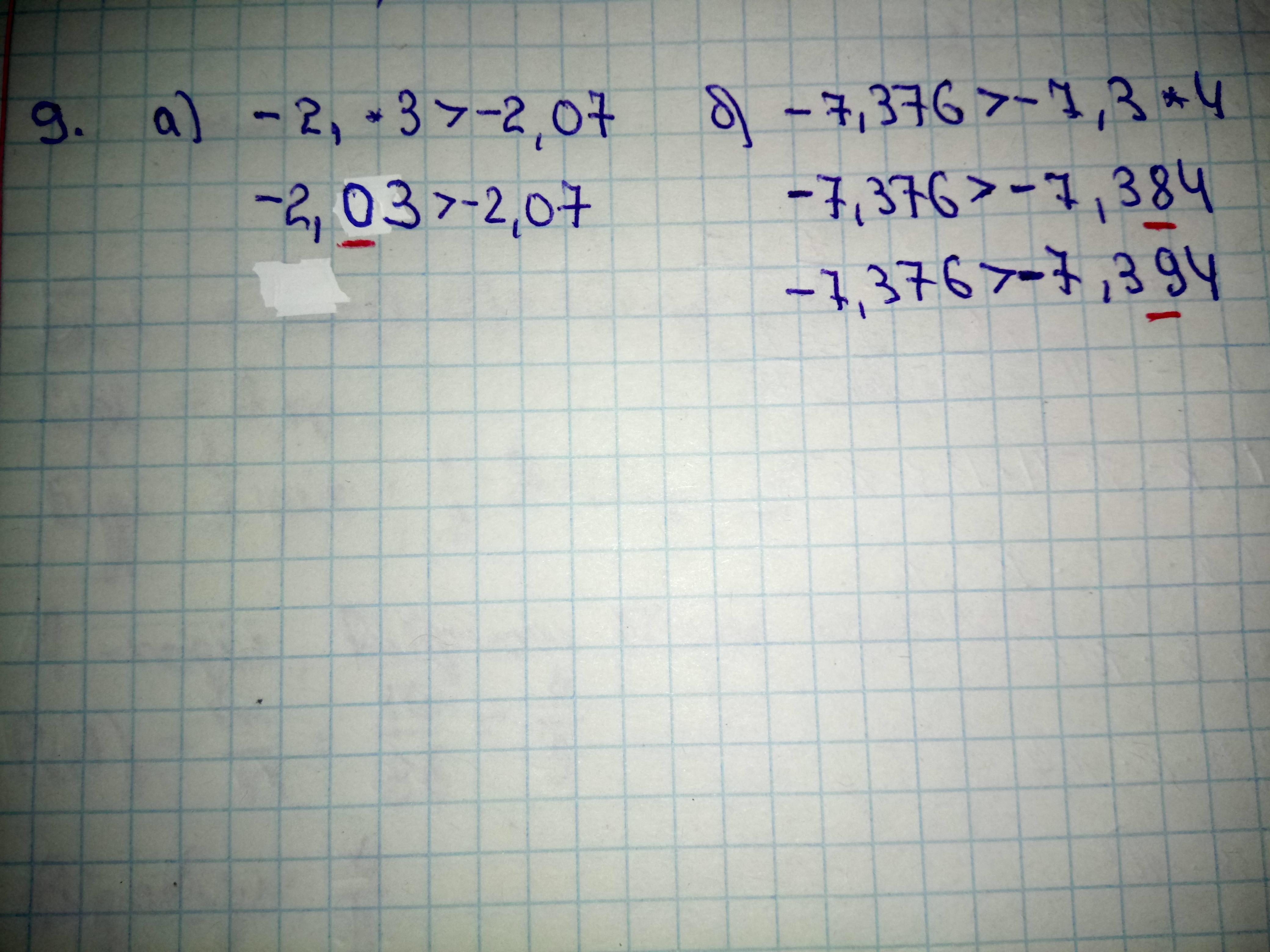 б) -7,376 > -7,3*4.