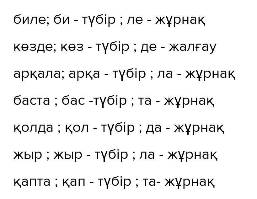 • Етістіктердің түбірі қай сөз табына жататынын анықта.