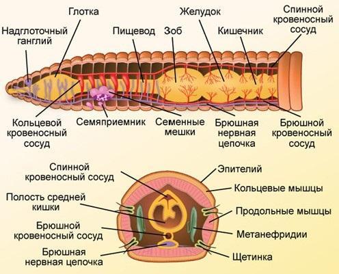 Кольцевые и продольные мышцы участвуют в движении червя.Попеременно сокращаясь, они позволяют червю ползти.