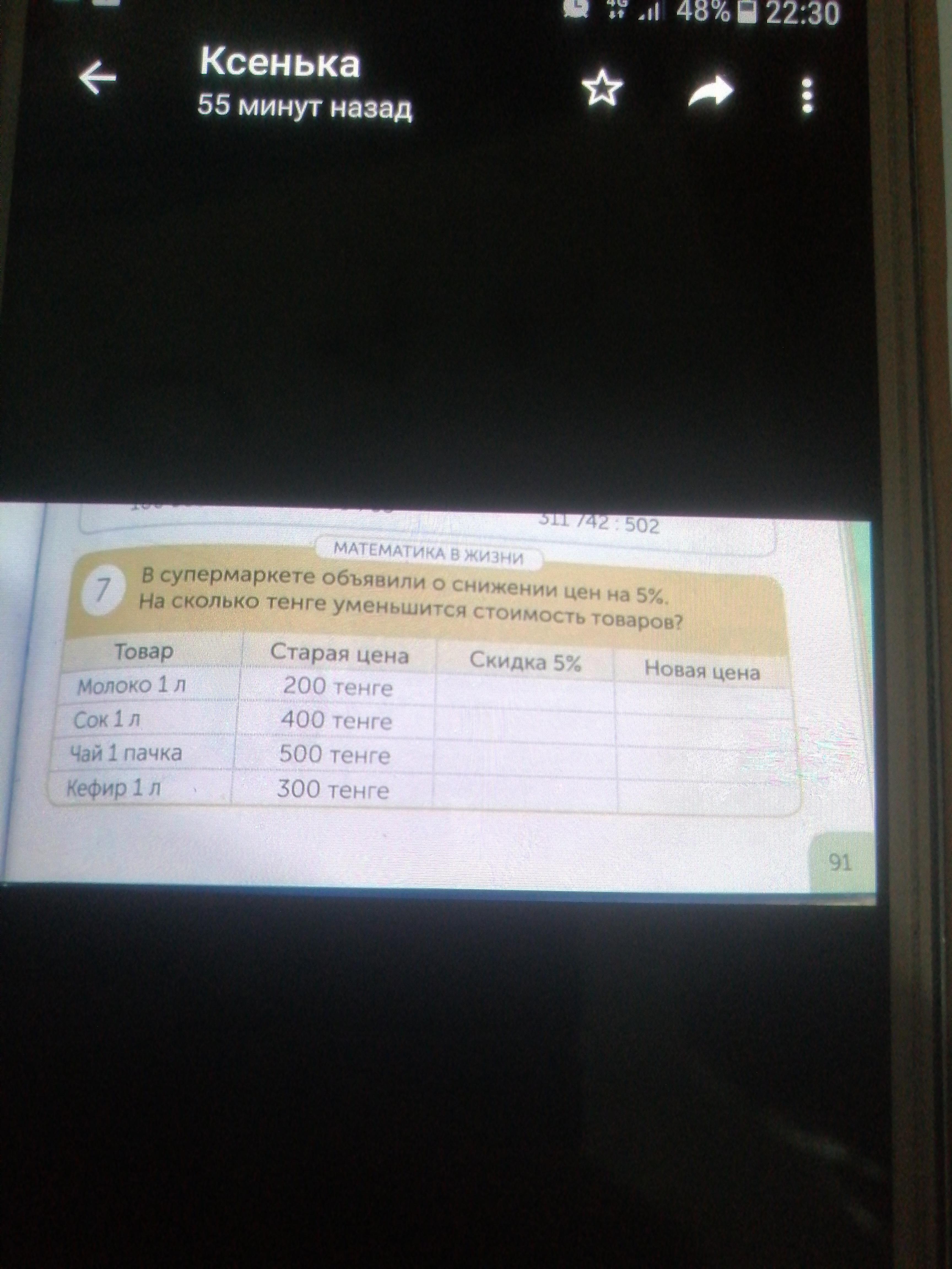 Чай 500, скидка 500*0,05= 25, новая цена 500 - 25= 475.