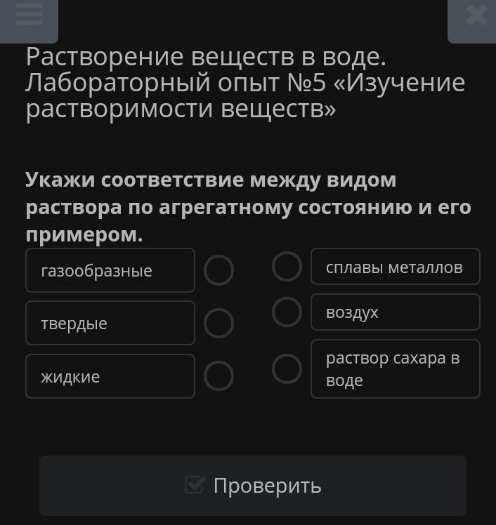 Укажи соответствие между видом раствора по агрегатному состоянию и его примером.