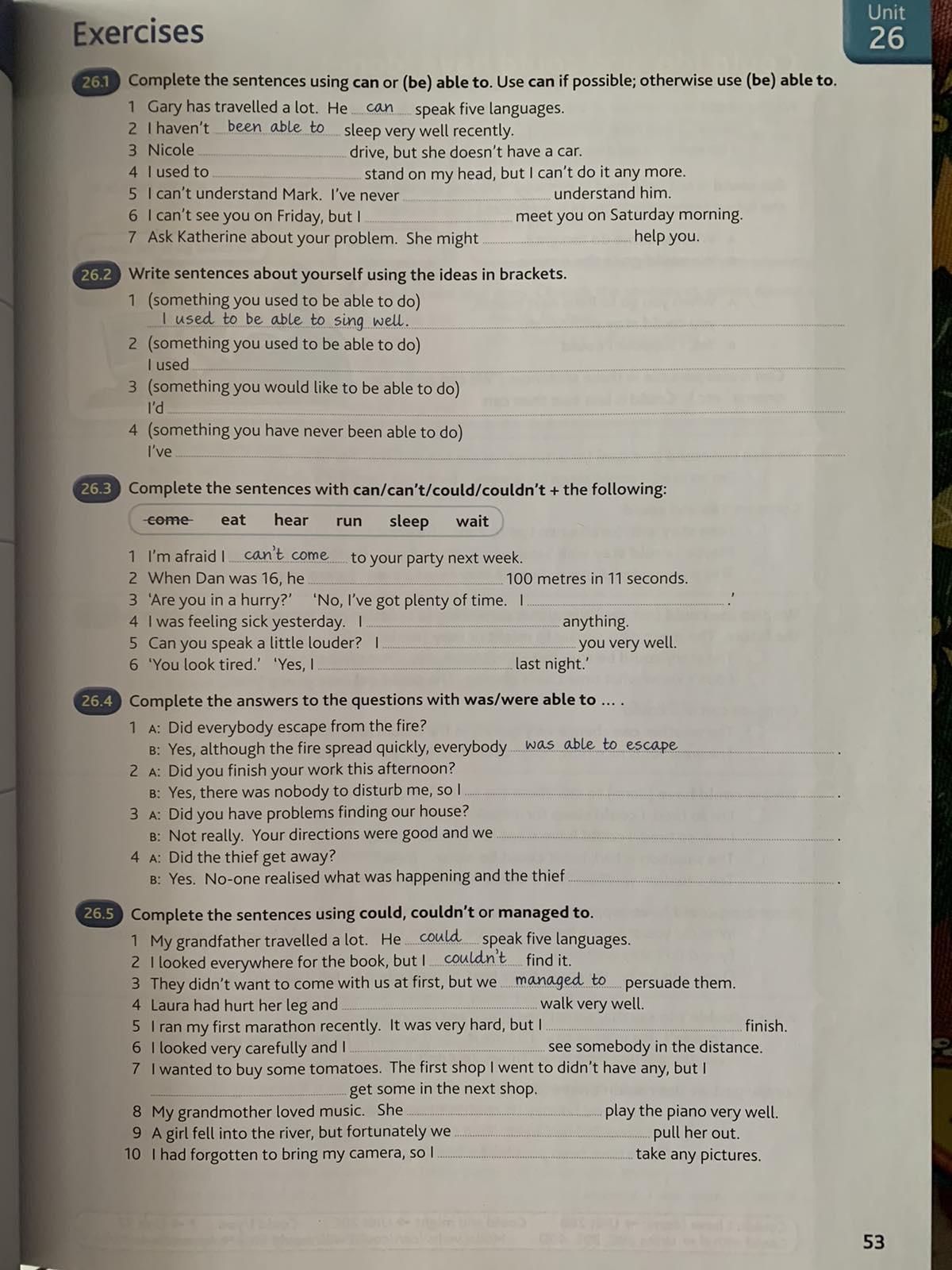 ex.5 4) couldn't, 5) managed to,6) could 7) managed to 8) could, 9) managed to, 10) couldn't.