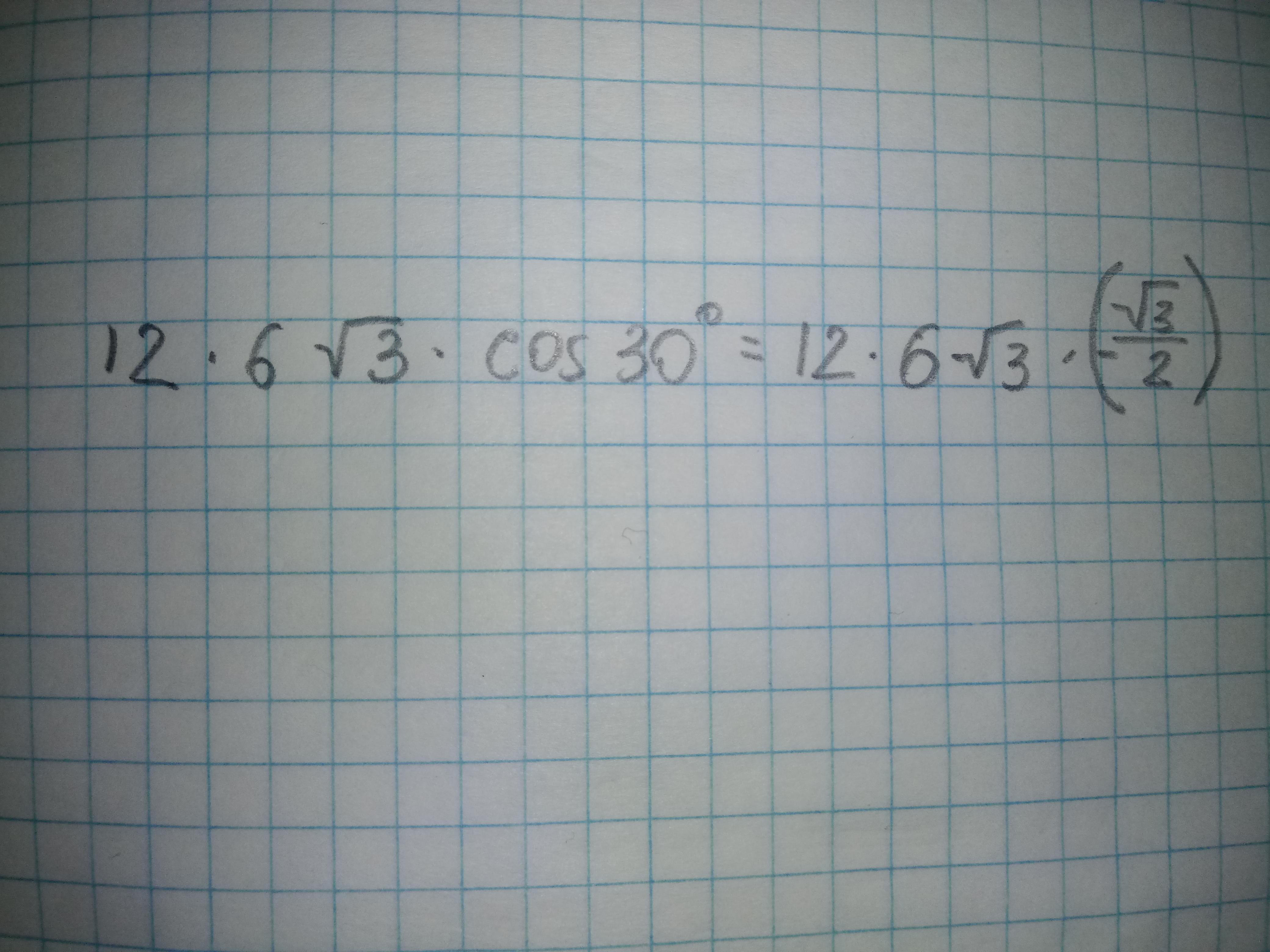 12 * 6√3 * cos30* = 12*6√3 * √3/2=12*6 *(√3*√3) /2 =