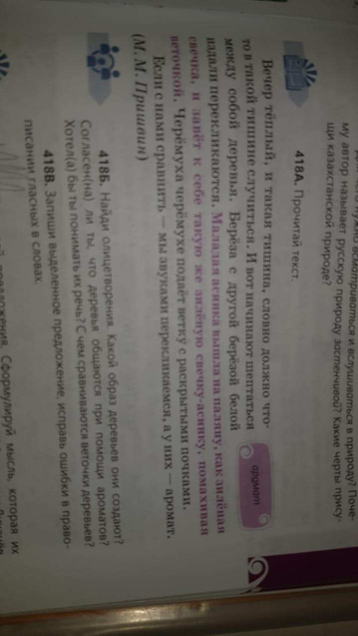 Вечер(-) случиться(=) ;начинают(=) шептаться(=) деревья (=);береза (-) перекликаются (=).Молодая осинка вышла на поляну,как зелёная свечка,и зовёт к себе такую же зелёную осинку-свечку,помахивая веточкой .осинка(-)вышла(=)свечка(-)зовет(=) осинку-свечку(-)помахивая(=) черёмуха (-)подаёт (=)сравнить(-)мы (-)перекликаемся(=)