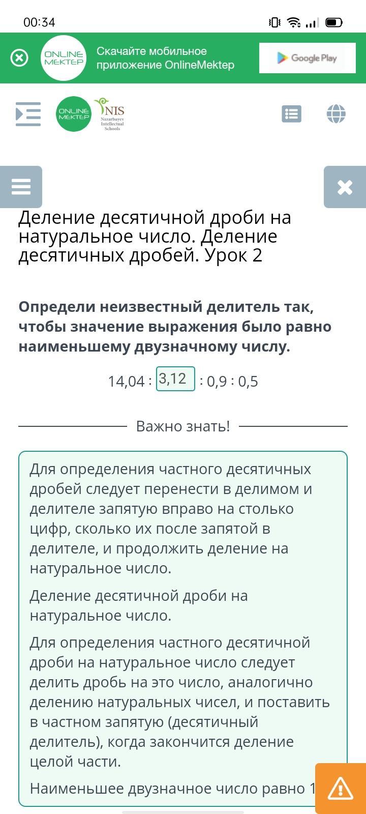Определи неизвестный делитель так, чтобы значение выражения было равно наименьшему двузначному числу.