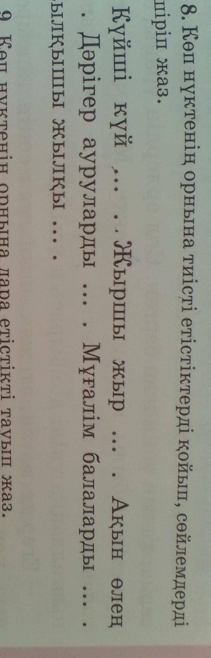 1 тартады; 2 жырады; 3 жазады; 4 емдейди; 5 окытады; 6; карайды.