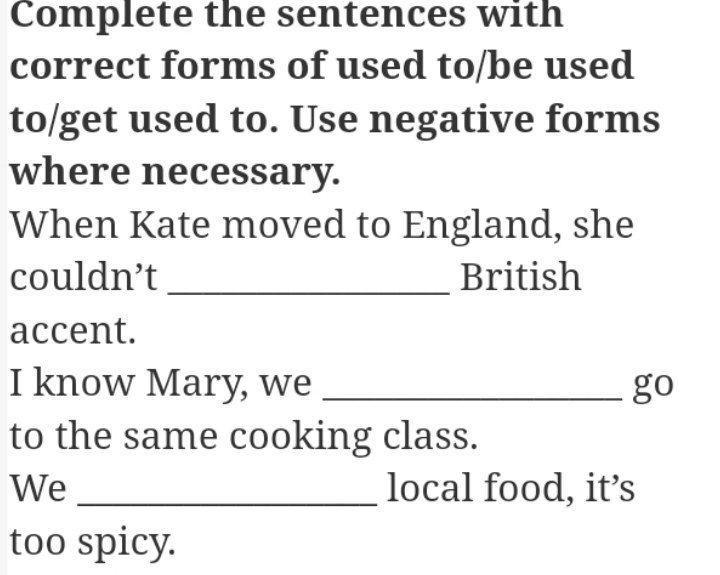 Complete the sentences with correct forms of used to/be used to/ get used to. Use negative forms where necessary