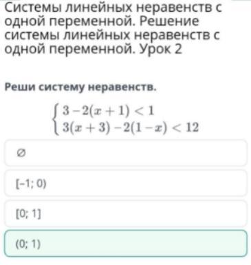 Системы линейных неравенств с одной переменной. Решение системы линейных неравенств с одной переменной. Урок 2 Реши систему неравенств. ∅ [0; 1] [–1; 0) (0; 1)