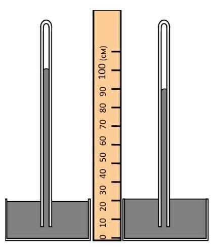 b) Какое атмосферное давление показывает ртутный барометр на рисунках?