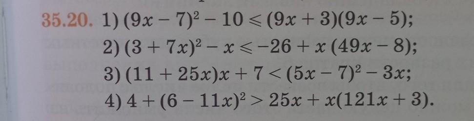 35.20. 1) (9x – 7)^2 - 10 < (9x + 3)(9x – 5);