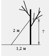 Лестницу длиной 2 м прислонили к дереву. На какой высоте (в метрах) находится верхний её конец, если нижний конец отстоит от ствола дерева на 1,2 м?