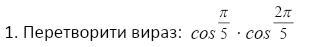 cos π/5 ·cos (2π)/5=(2sin π/5 ·cos π/5 ·cos (2π)/5)/(2sin π/5)=(sin (2π)/5 ·cos (2π)/5)/(2cos π/5)=(sin72° ·cos72°)/(2cos36°)=(sin144°)/(4cos36°)=(cos36°)/(4cos36°)=1/4