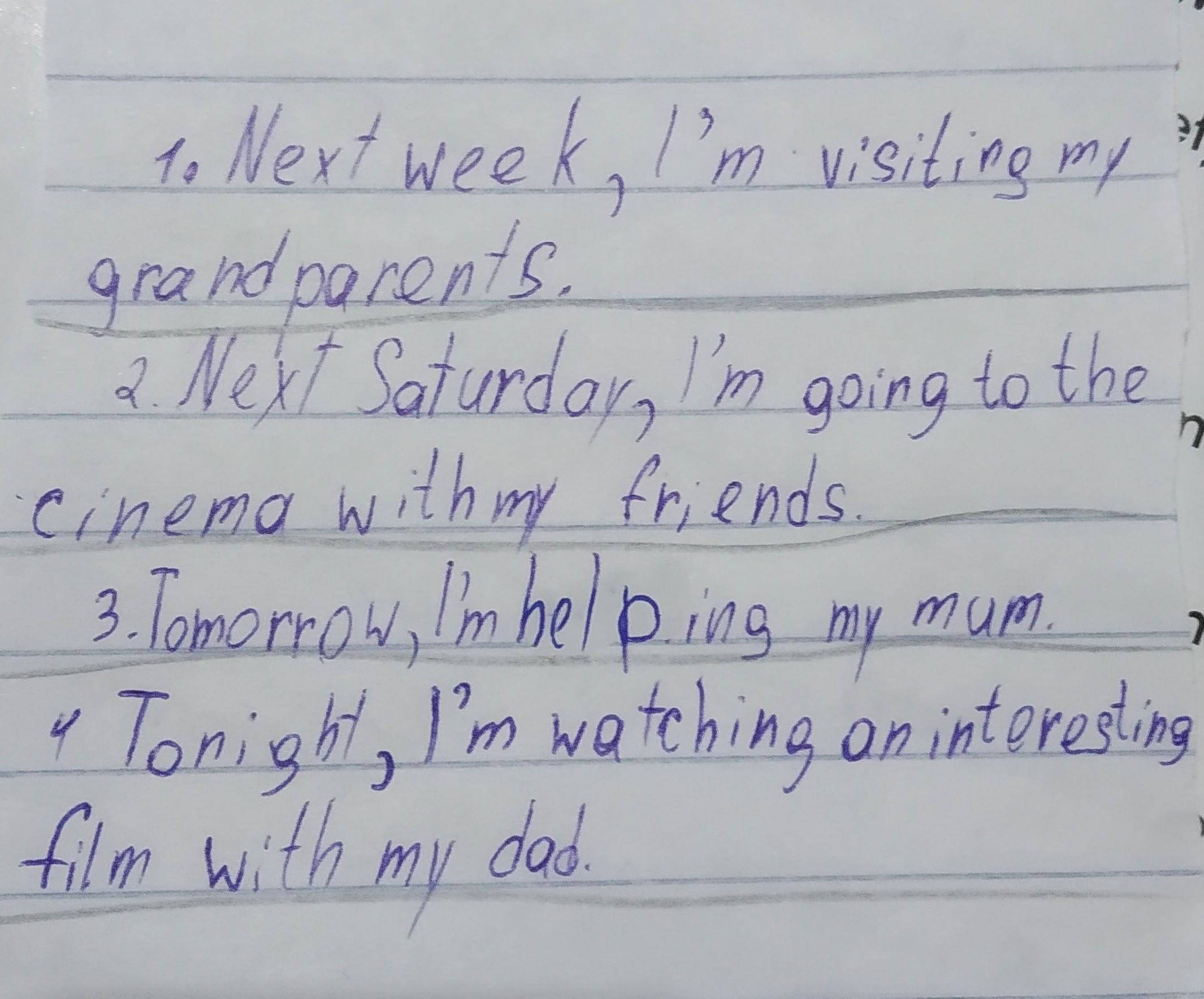 1. Next week, I'm visiting my grandparents.