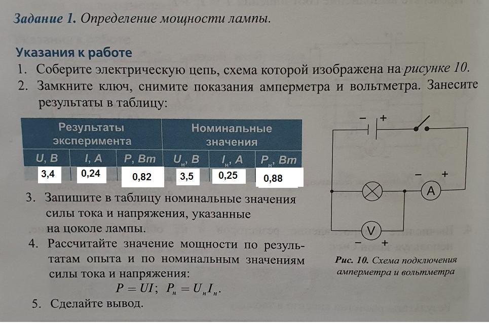 3. Записал в таблицу номинальные значения силы тока и напряжения, указанные на цоколе лампы.