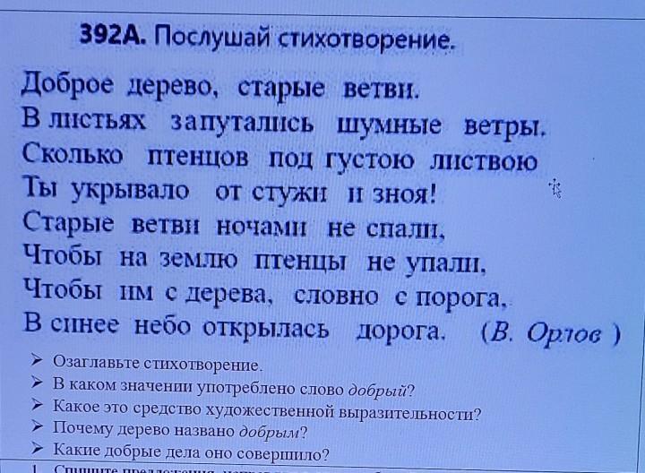 4) Я думаю, что дерево названо добрым, потому как дерево оберегало птенцов от ветра, не давало упасть на землю