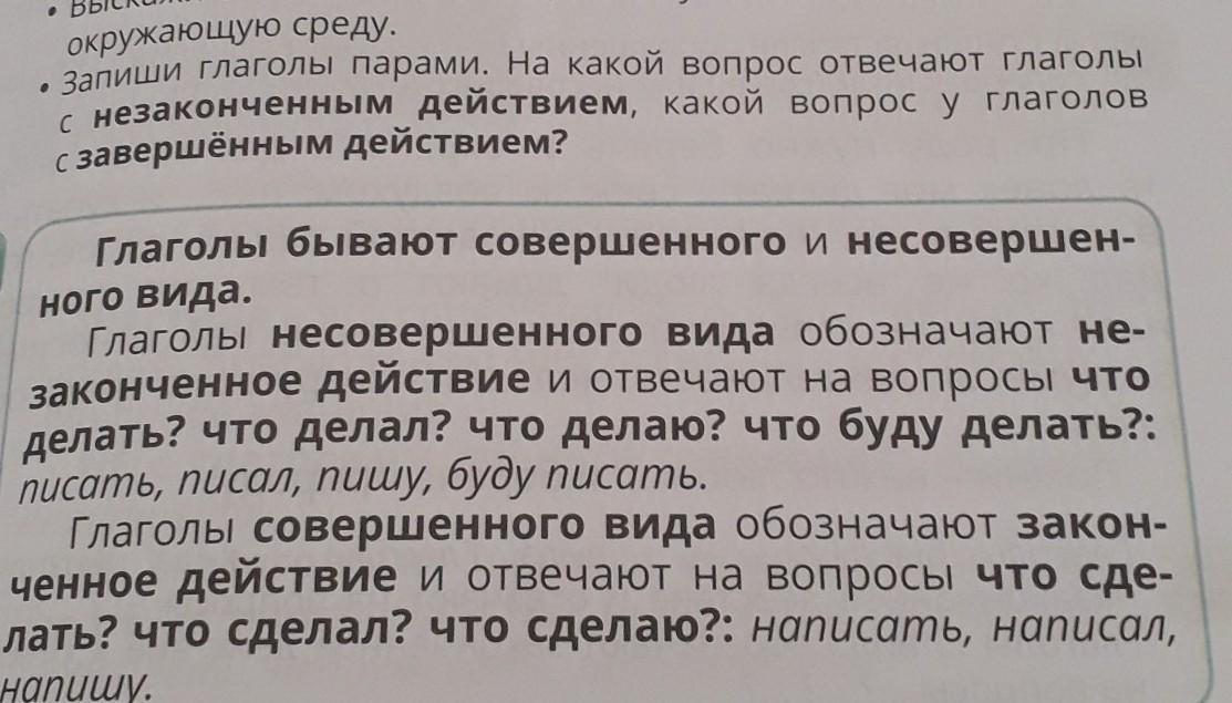 запиши глаголы парами на какой вопрос отвечают глаголы с незаконченим действием какой вопрос у глаголов с завершеным действием