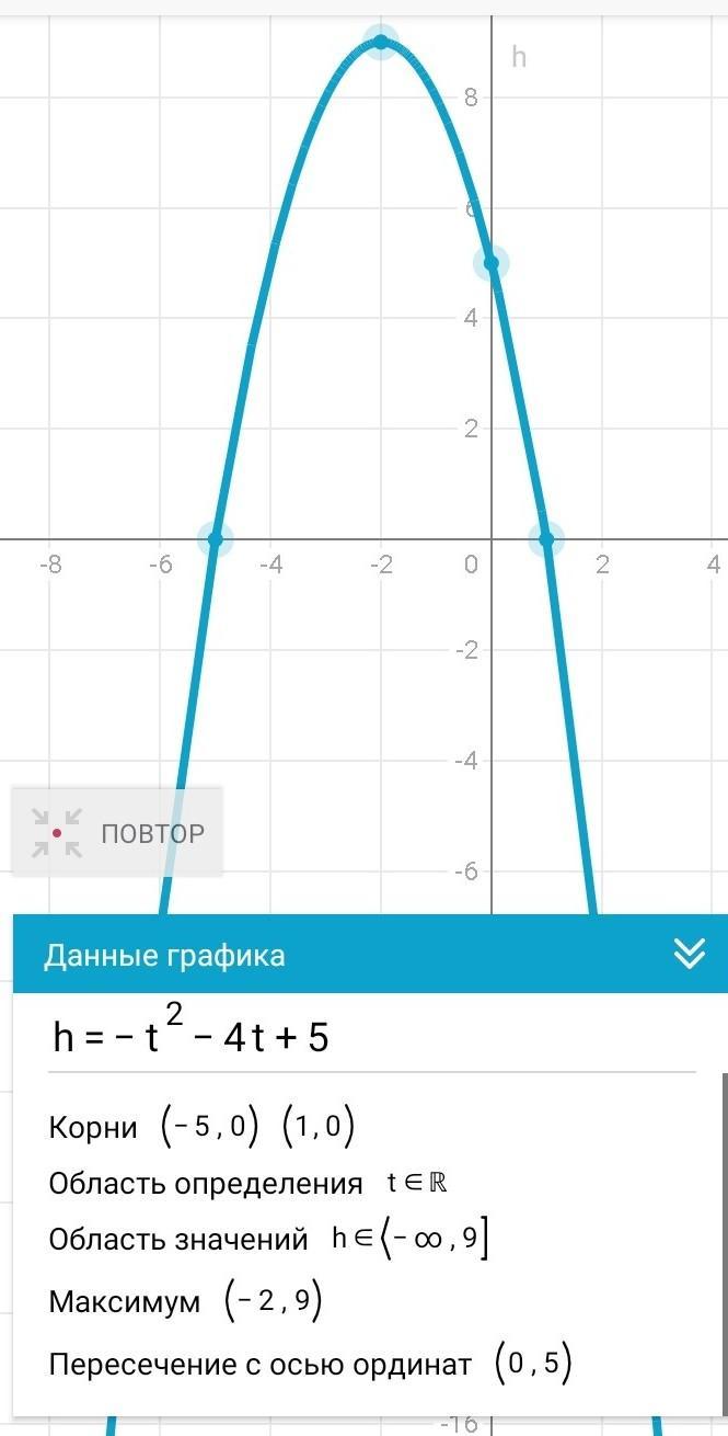 Если на дне железной консервной банке пробить отверстие и налить в нее воду, то уровень воды будет убывать по закон h= -t²-4t+5 постройте график функци помогите пожалуйста плизззз