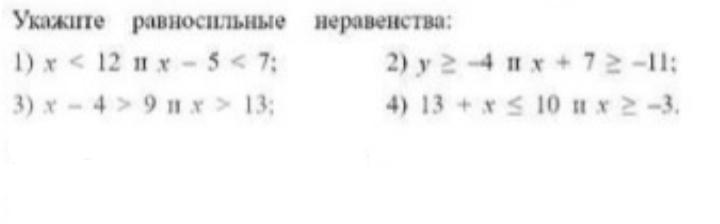 1) х<12и х<7+5 2) у》-4 и х》-11-7