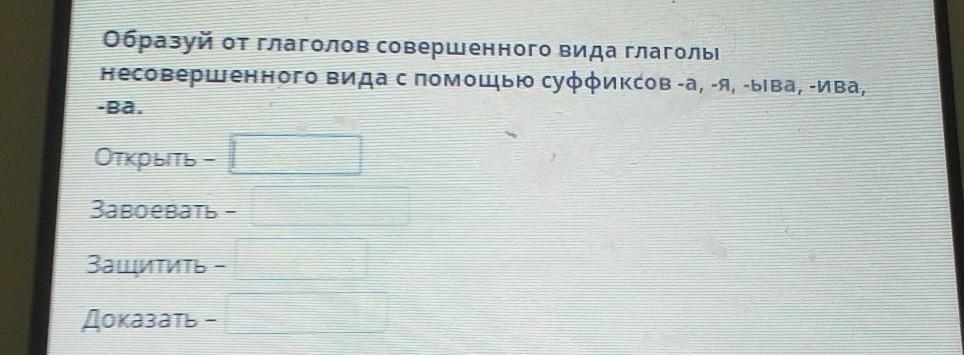 несовершенного вида с помощью суффиксов -а, -я, -ыва, -ива,