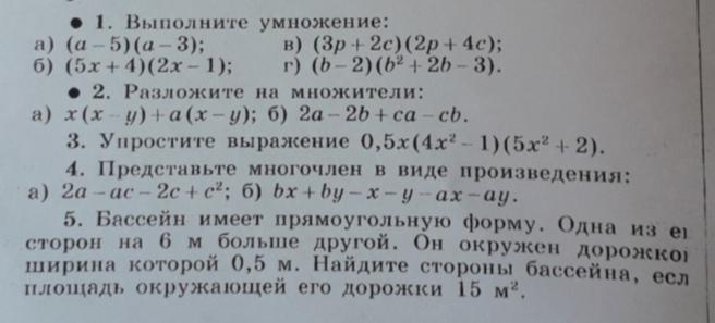 5) Сторона a = x, сторона b = x+6. Sбас = x^2 + 6x. Стороны бассейна вместе с дорожками x+1 и x+7, S = x^2 + 8x + 7 = Sбасс + Sдорож = x^2 + 6x + 15.