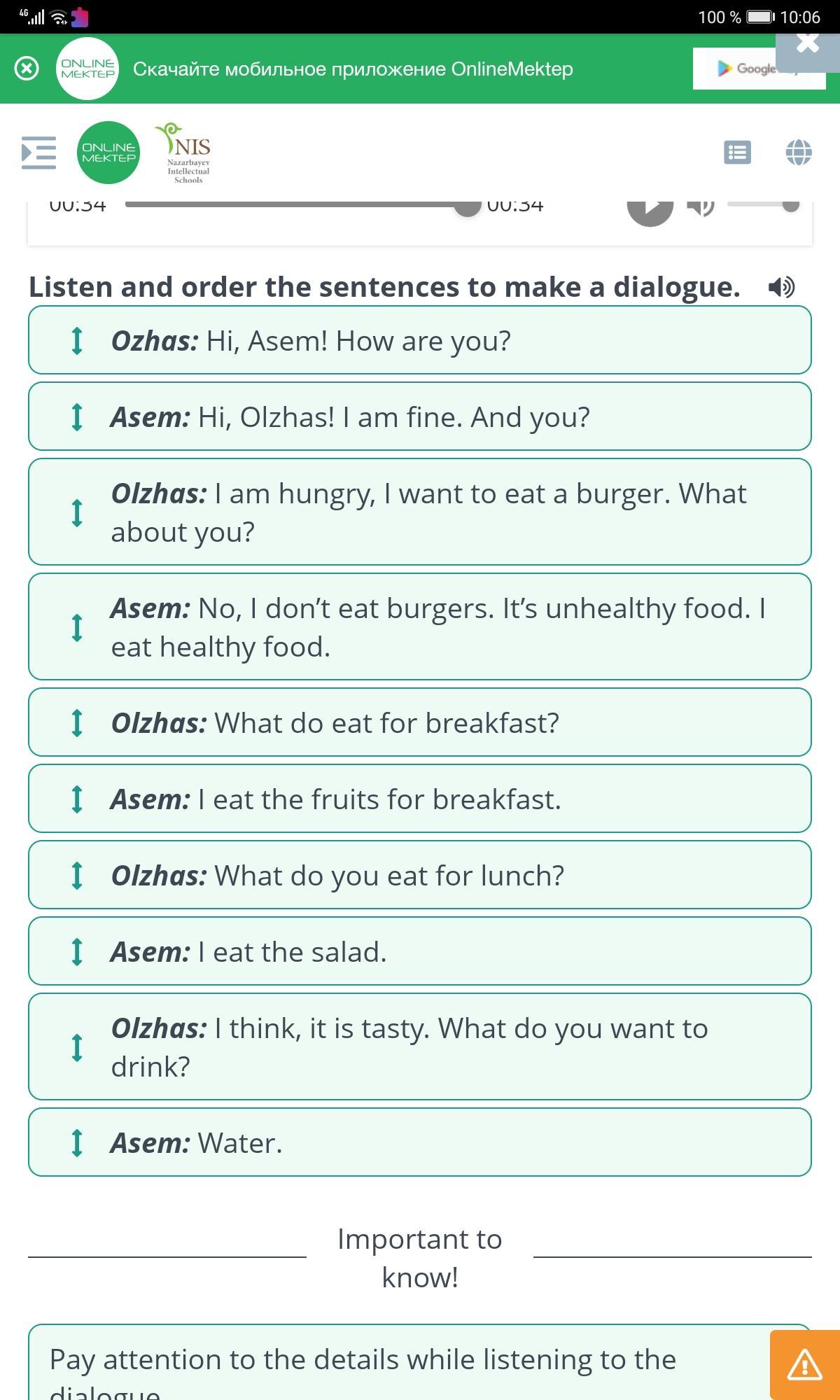 1 Olzhas: I think, it is tasty. What do you want to drink?