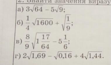 1/4 ·√1600 +√(1/9)=1/4 ·40 +1/3=10 1/3