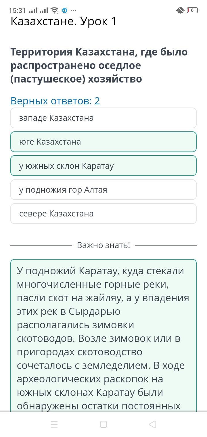 территория казахстана где было распространено оседлое хозяйство верных ответов: 2 у южных склон каратау севере казахстана юге казахстана у подножия гор алтая западе казахстана