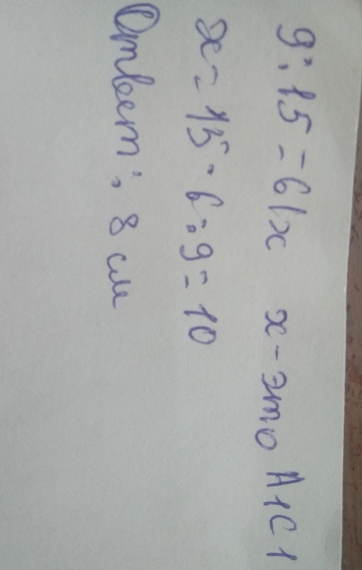 Трикутники АВС і А1В1С1 подібні. Знайдіть невідому сторону трикутника АВС, якщо АС = 6 см, АВ =15 см, В1С1 = 15 см, А1С1 = 9 см.