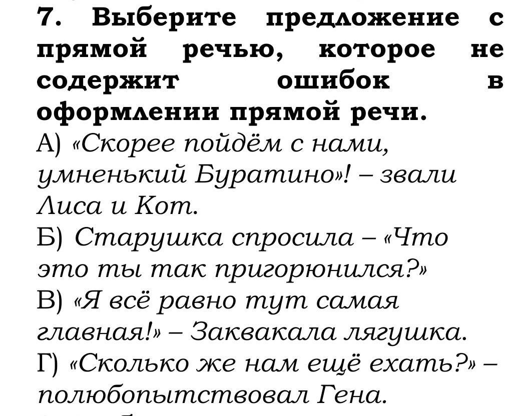 7. Выберите предложение с прямой речью, которое не содержит ошибок в оформлении прямой речи.