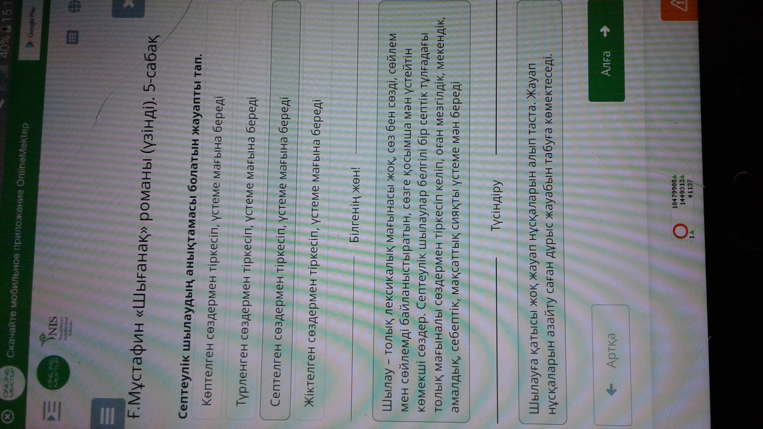 Септеулік шылаудың анықтамасы болатын жауапты тап.