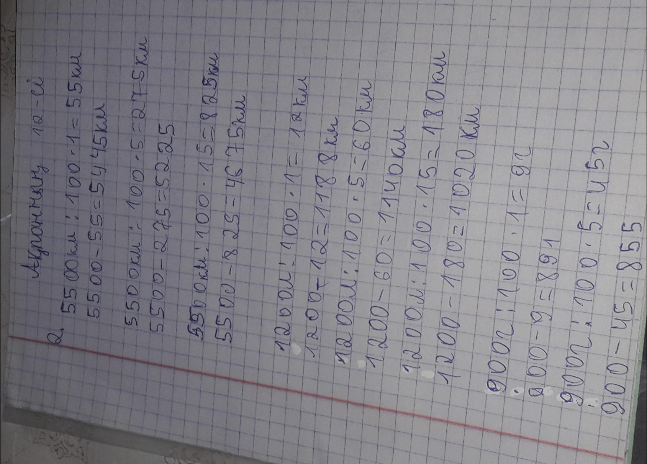 САМОСТОЯТЕЛЬНАЯ РАБОТА 2 Вычисли. 1% 5% 15% 5500 км 1200 ли 900 г