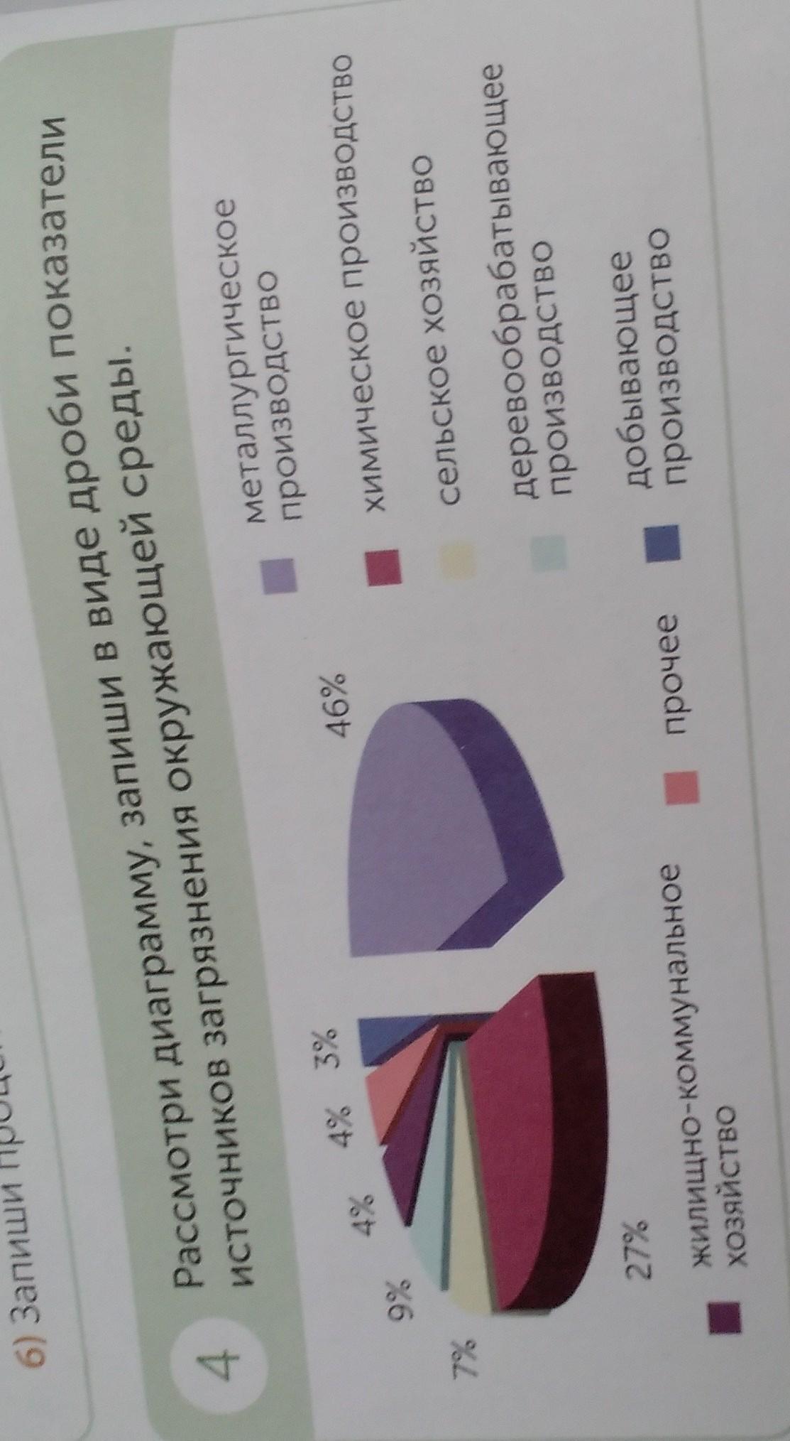 расмотри диаграмму запиши в виде дроби показатели источников загрязнения окружающей среды пж помогите сделайте на листок и покажите пж