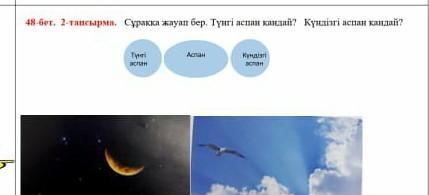 48-бет. 2-тапсырма. Сұраққа жауап бер. Түнгі аспан қандай? Күндізгі