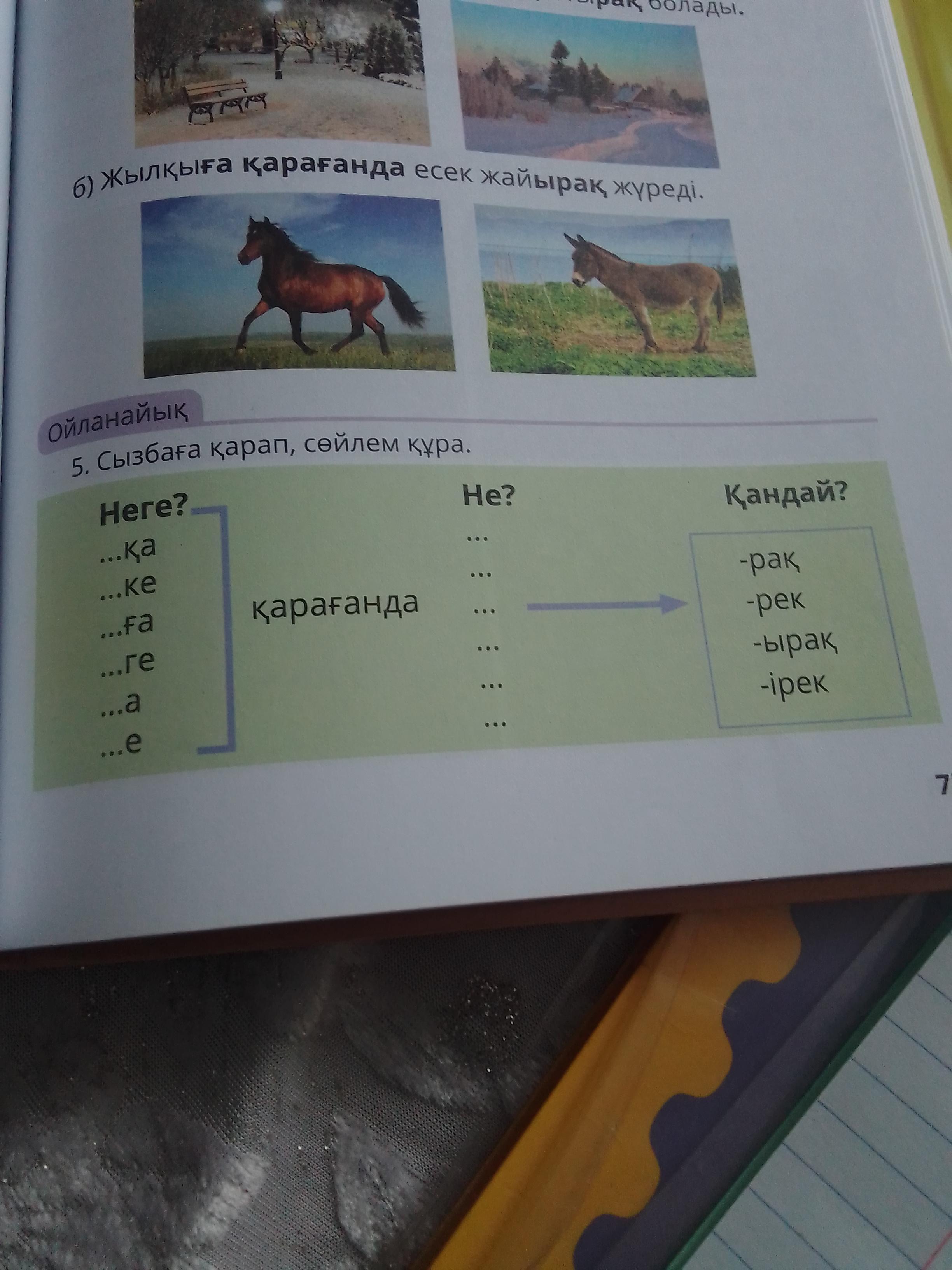 2)Есекке қарағанда жылқы жылдамырақ жүгіреді.