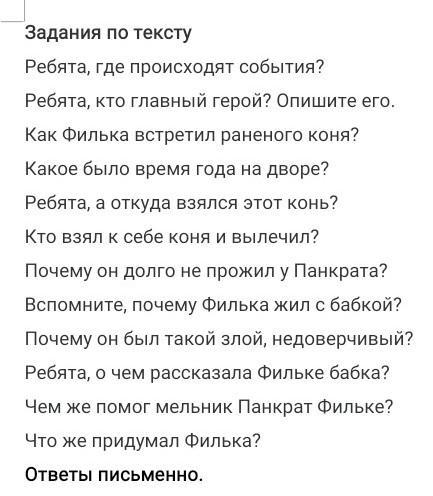 3. Раненый конь пришёл к Фильке на запах хлеба.