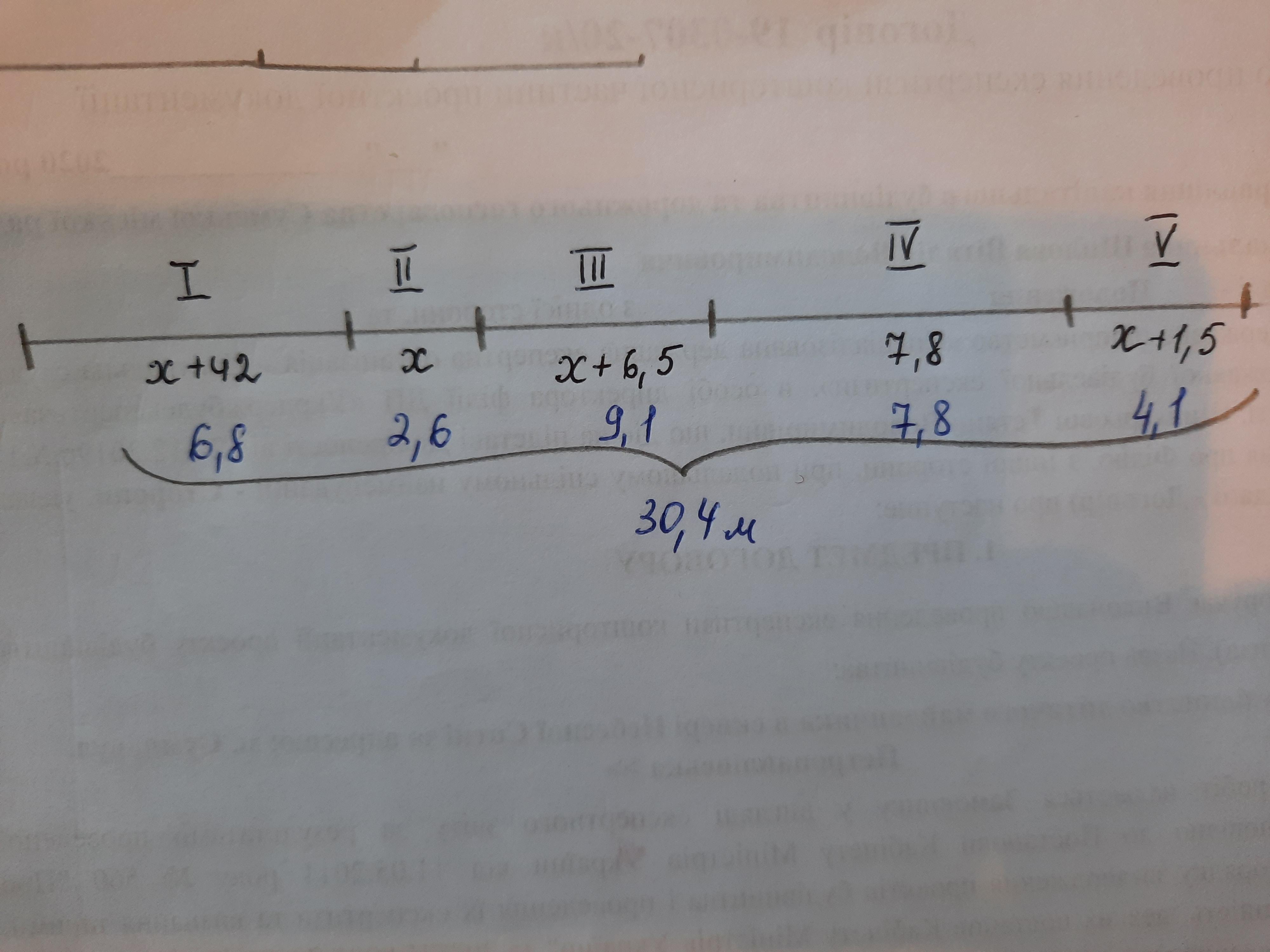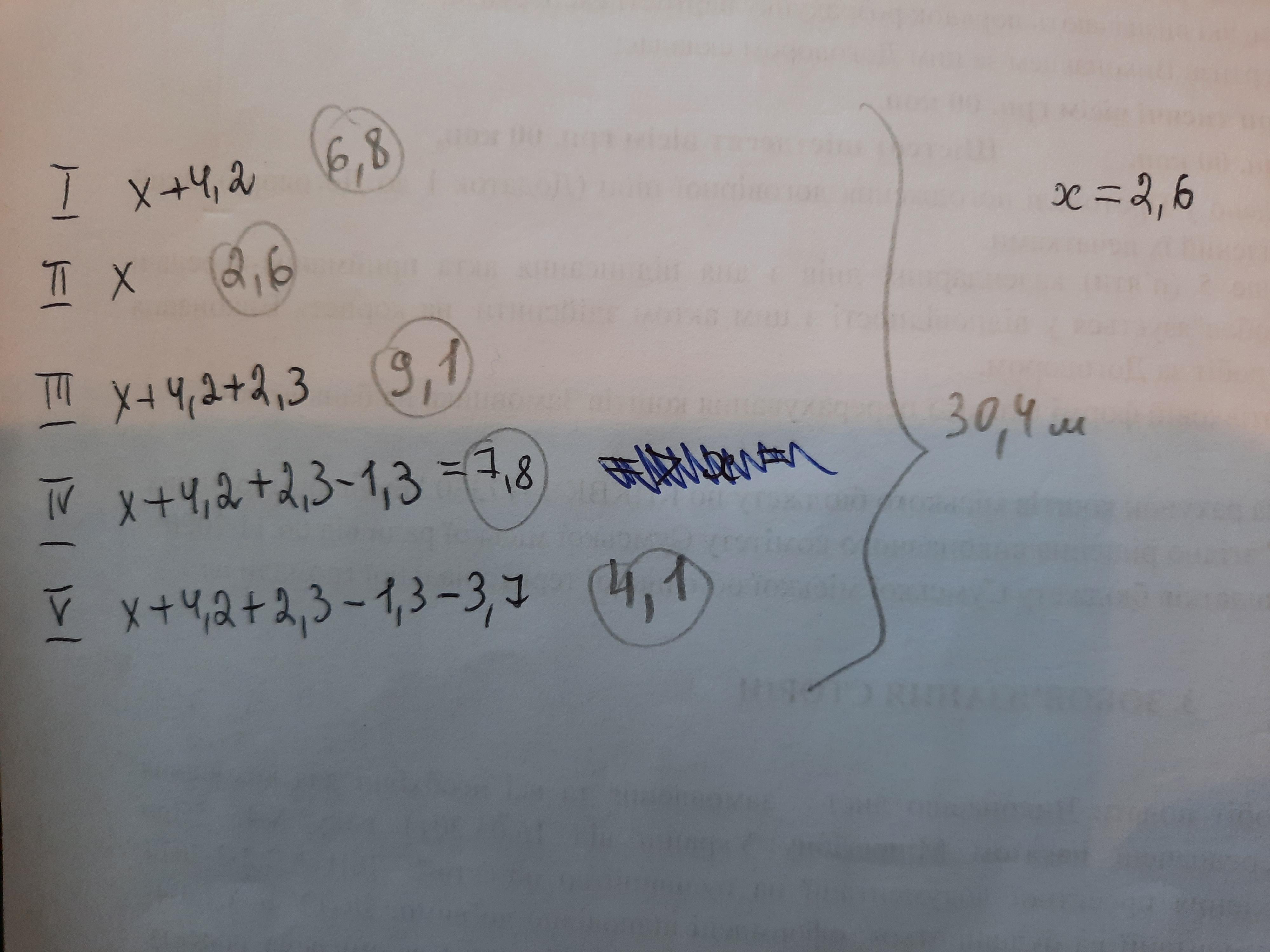 Находим х из условия для четвертого куска, так как уже известно, что он имеет длину 7,8 м