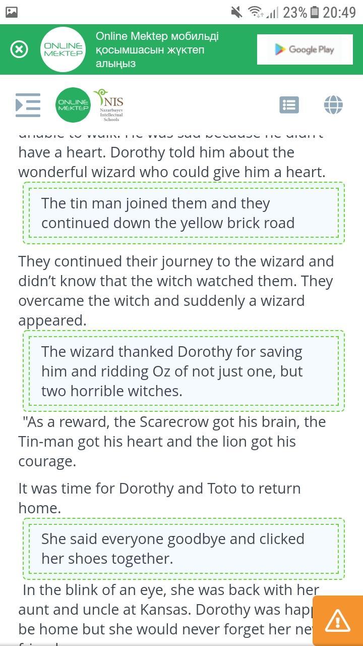 Walking further, they met a tin man, he was unable to walk. He was sad because he didn’t have a heart. Dorothy told him about the wonderful wizard who could give him a heart.