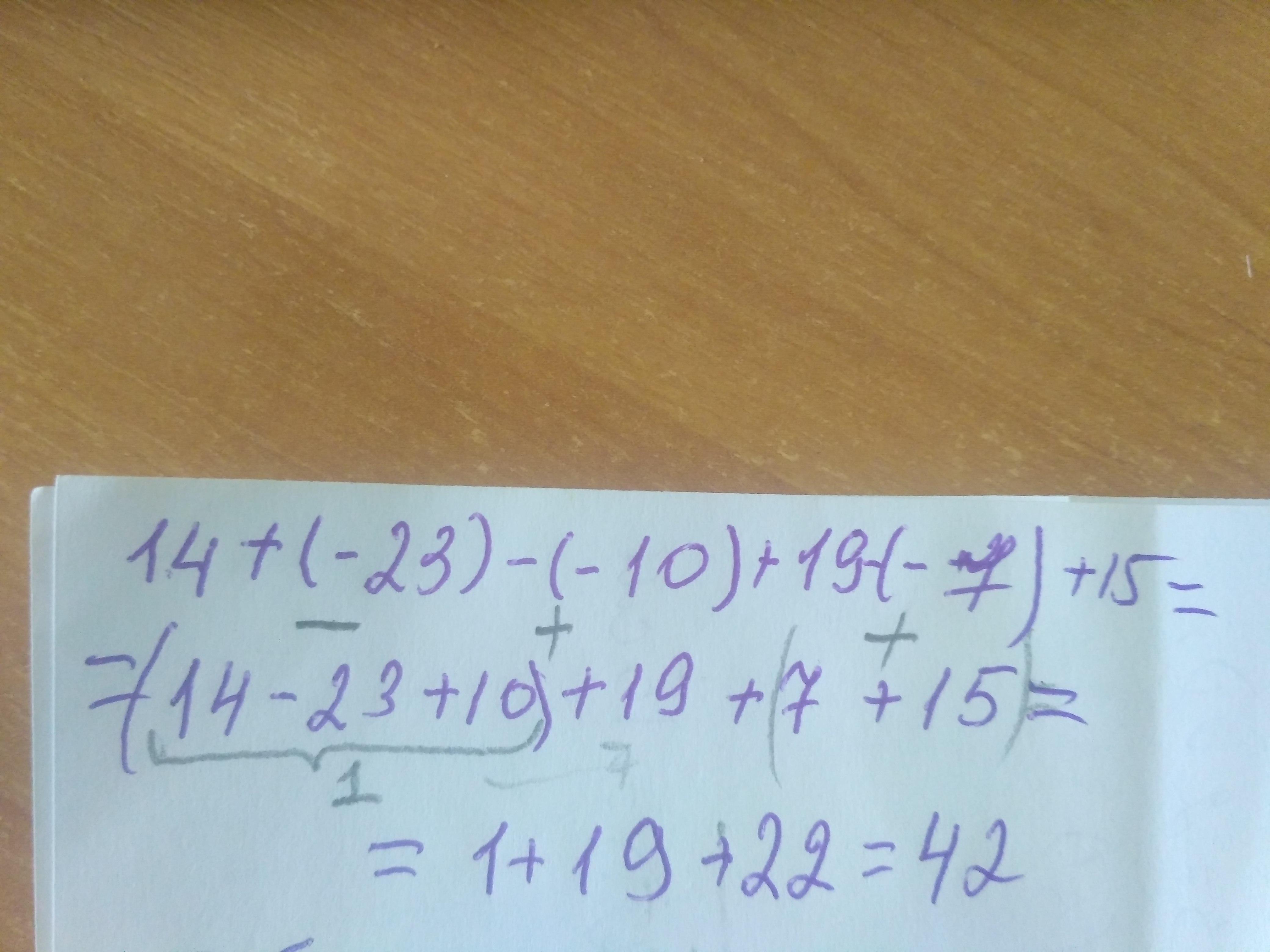 14+ (-23)– (-10)+19-(-7)+15; надо з ришением