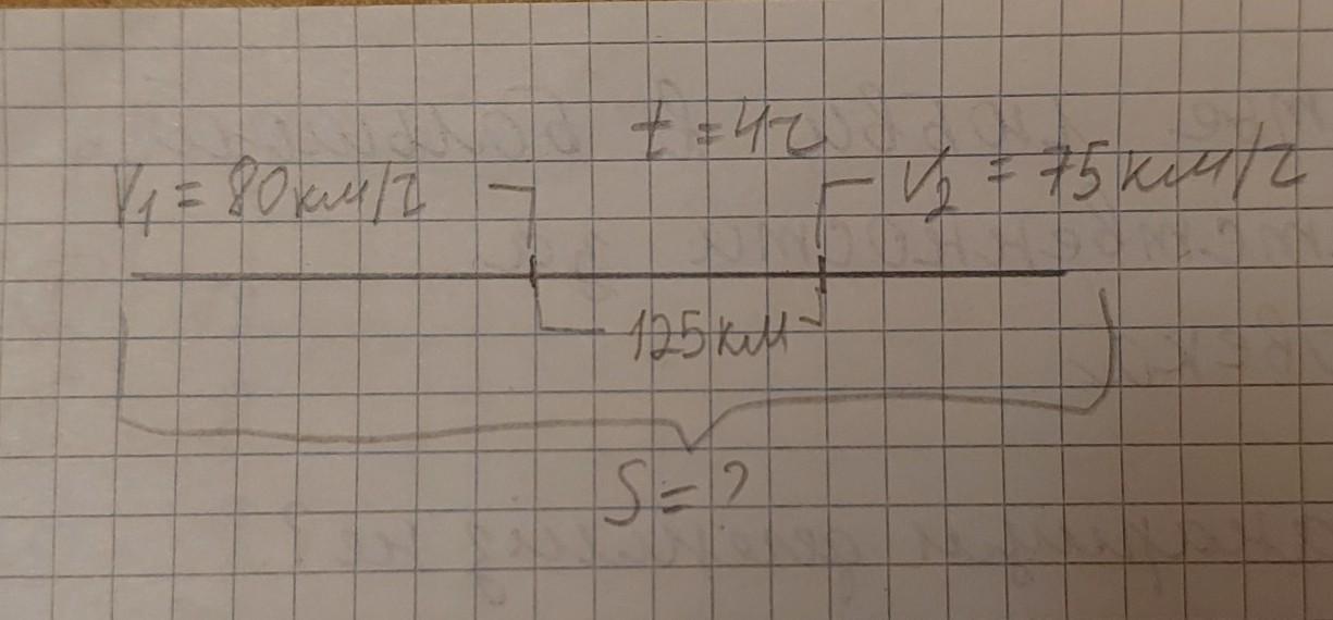 Из двух городов расстояние между которыми 125 км выехали одновременно в противоположных направлениях два автобуса Скорость одного 80 км ч а другого 75 км ч какое расстояние было между ними через 4 часа