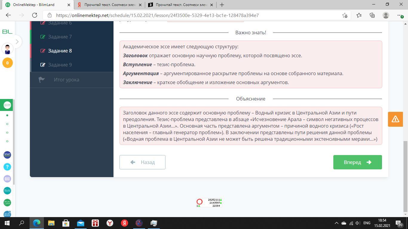 Прочитай текст. Соотнеси элемент композиции и часть академического эссе.