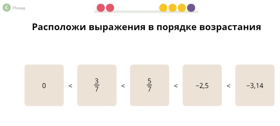 сначала -3.14 ; -2.5 ; 0 ; 3/7 ; 5/7 ;